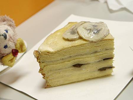 四十層基本蛋皮夾香濃香蕉巧克力奶霜吃起來一樣超濕軟餅皮,無層層堆疊感,而是很濕軟